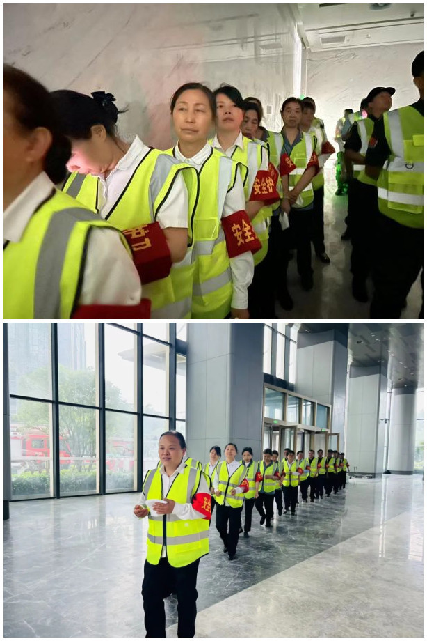 平日里,他們是樓宇環(huán)境的“守護(hù)者”;危急時,他們是疏散逃生的“引路人”! 演習(xí)中,江城清洗事業(yè)部全體成員擔(dān)任疏散組核心角色。