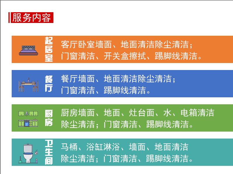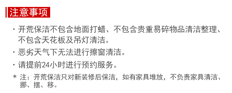 適合三個月以上或很久未徹底清潔的普通家庭房屋/出租房回收或入住/搬家后的房屋4居室及以上按10元/平米計算,請拍下后聯(lián)系客服改價或服務完成后在線補價。
